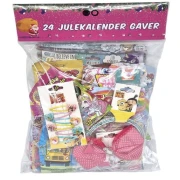 Pakning med 24 kalendergaver. Blanding med morsomme overraskelser som barnet vil sette pris på.