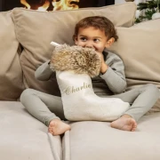 Med sin myke kremfarge og elegante pelskant gir den din julefeiring en ekstra touch av eleganse og hygge. Den rommer ikke bare julegaver, men også minner og følelser som blir en del av ditt hjerte. Ved å velge ditt navn på sokken skaper du en personlig og unik detalj som vil bringe en spesiell varme til din jul.